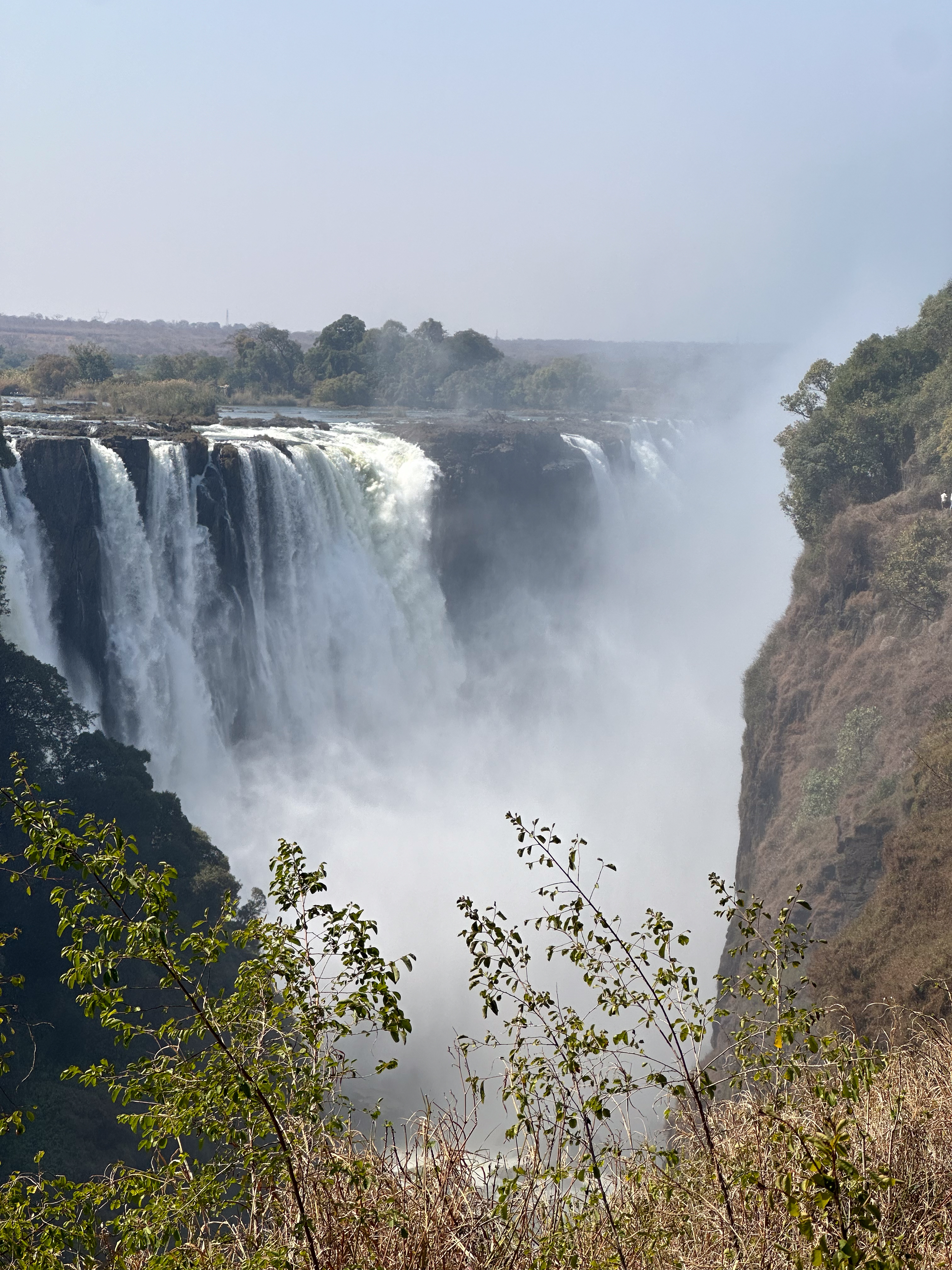 빅토리아 폭포는 폭 1,708m, 높이 108m로, 멀리서도 보이는 하얀 물안개 때문에 “천둥 치는 연기”라는 뜻의 모시-오아-툰야(Mosi-oa-Tunya)로 불려 왔죠.